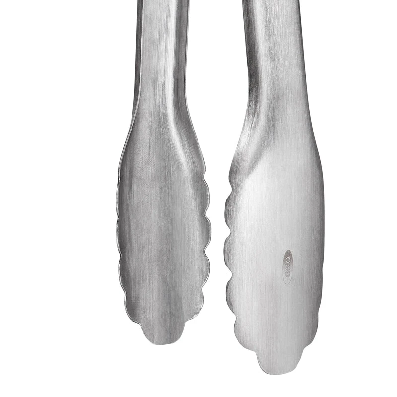 - Locking tongs have a scalloped edge to easily pick up large cuts of meat and a built-in bottle opener for convenient use while cooking.
