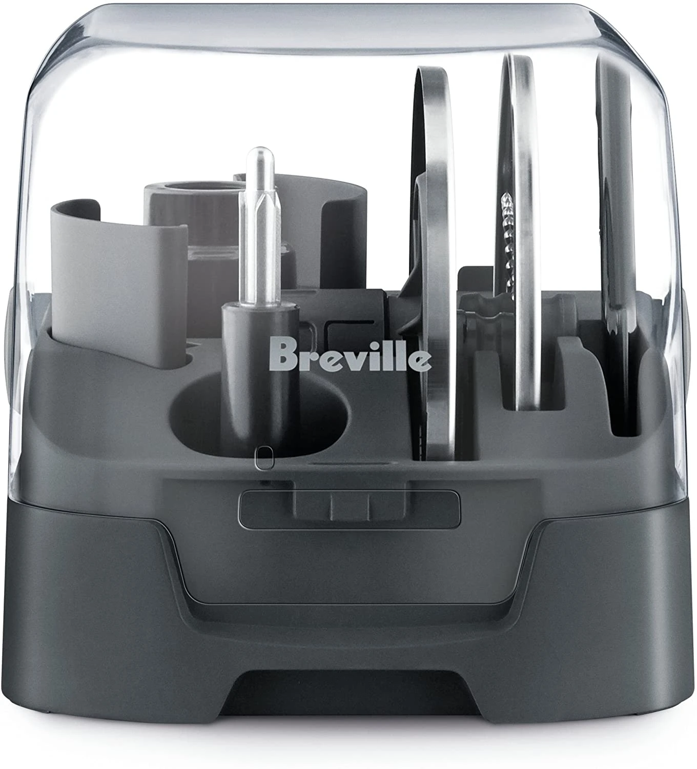 - Accessories: Included Accessories: Stainless steel spindle Micro-Serrated S-Blade Adjustable Slicer with 24 settings Reversible Shredder Dough Blade and Storage case