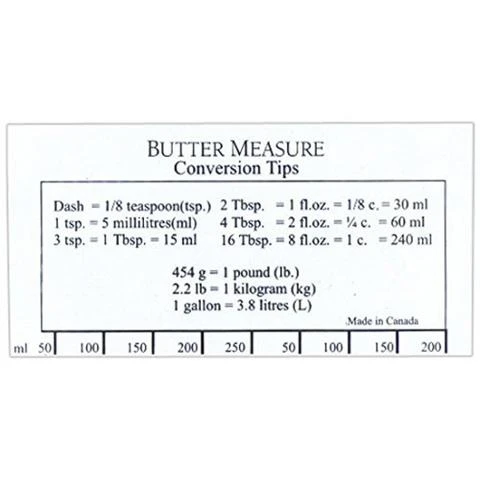 The bakers butter measurer is an indispensable tool for measuring butter. The butter ruler is extremely easy to use and helps you cut the appropriate amount of butter every time.