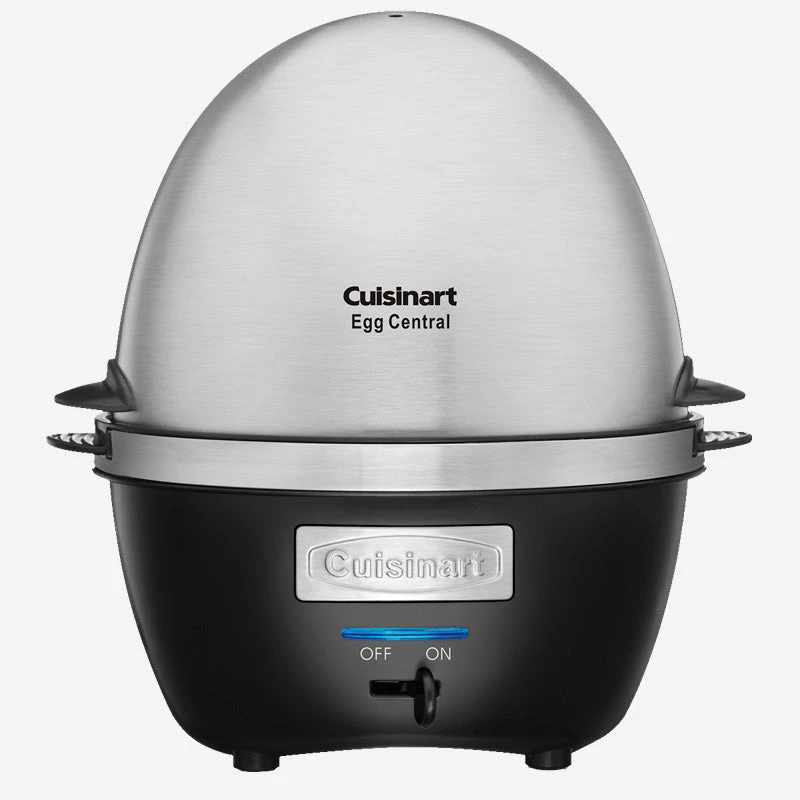 The Cuisinart Egg Central appliance has a new two-tiered cooking system that allows ten eggs to be cooked at once. Eggs can be cooked to a hard, medium or soft consistency. The egg cooker also comes with removable trays that can be used to poach eggs and make omelets. Cooking time is controlled precisely by the amount of water added. Fill included measuring beaker to the appropriate range and pour water into cooking plate. The built-in LED light, audible alert and standby mode help guard against overcooking. All egg favourites can be made in one compact unit.