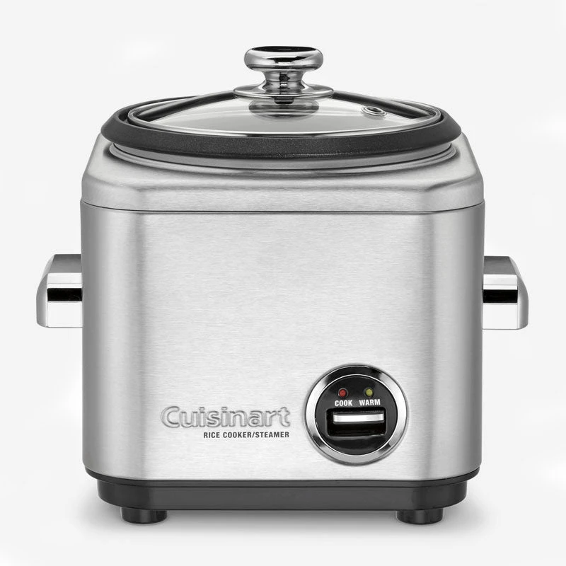 Now making the perfect rice dish is easy with the new brushed stainless Cuisinart Rice Cooker. Its steam vent helps to prevent splattering, while its chrome-plated handles stay cool to the touch. Use the built-in tray to steam other foods while the rice is cooking; when you’re done, the non-stick coating and durable construction make cleanup a breeze.