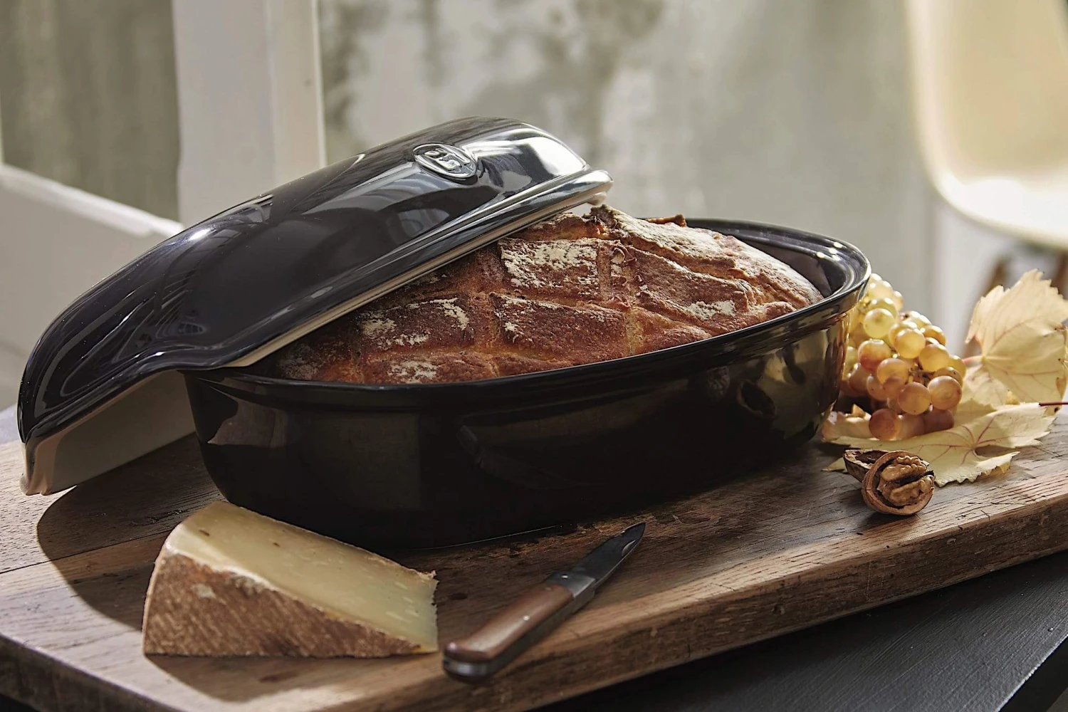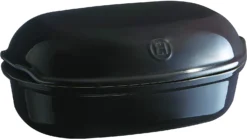 The Emile Henry Bread Loaf Baker allows you to bake all kinds of different homemade bread with a crispy crust and soft inside. The domed lid in refractory ceramic creates the perfect level of humidity for a perfect loaf. The base and lid have holes which help the dough to rise and get a crispy, golden crust all over, and the ribs on the bottom prevent the loaf from sticking. Its small handles make it easy to manipulate.