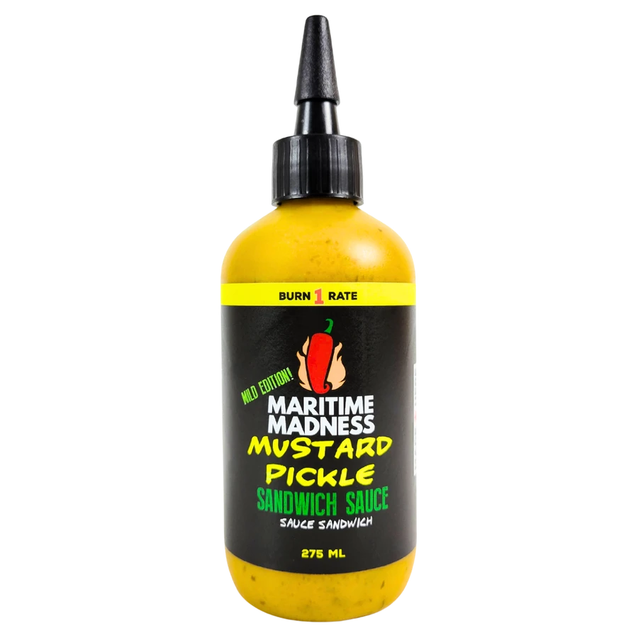 Mild Mustard Pickle Hot Sauce: A Nostalgic Twist with a Gentle Kick! Are you ready for a flavour experience that will transport you straight to the down east vibes of your childhood? Maritime Madness proudly presents our Mustard Pickle Hot Sauce – now available in a milder version perfect for sandwiches!
