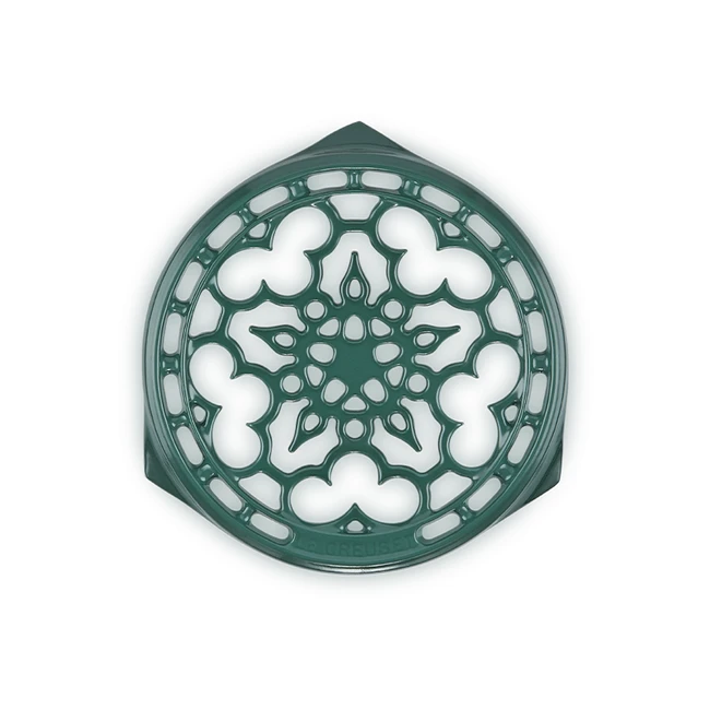 - Built with enamelled cast iron, the Deluxe Round Trivet absorbs heat from pots, pans, and other cookware and bakeware.