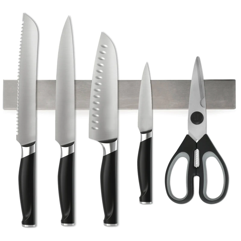 - Powerful, fully magnetic surface safely stores knives and tools within easy reach