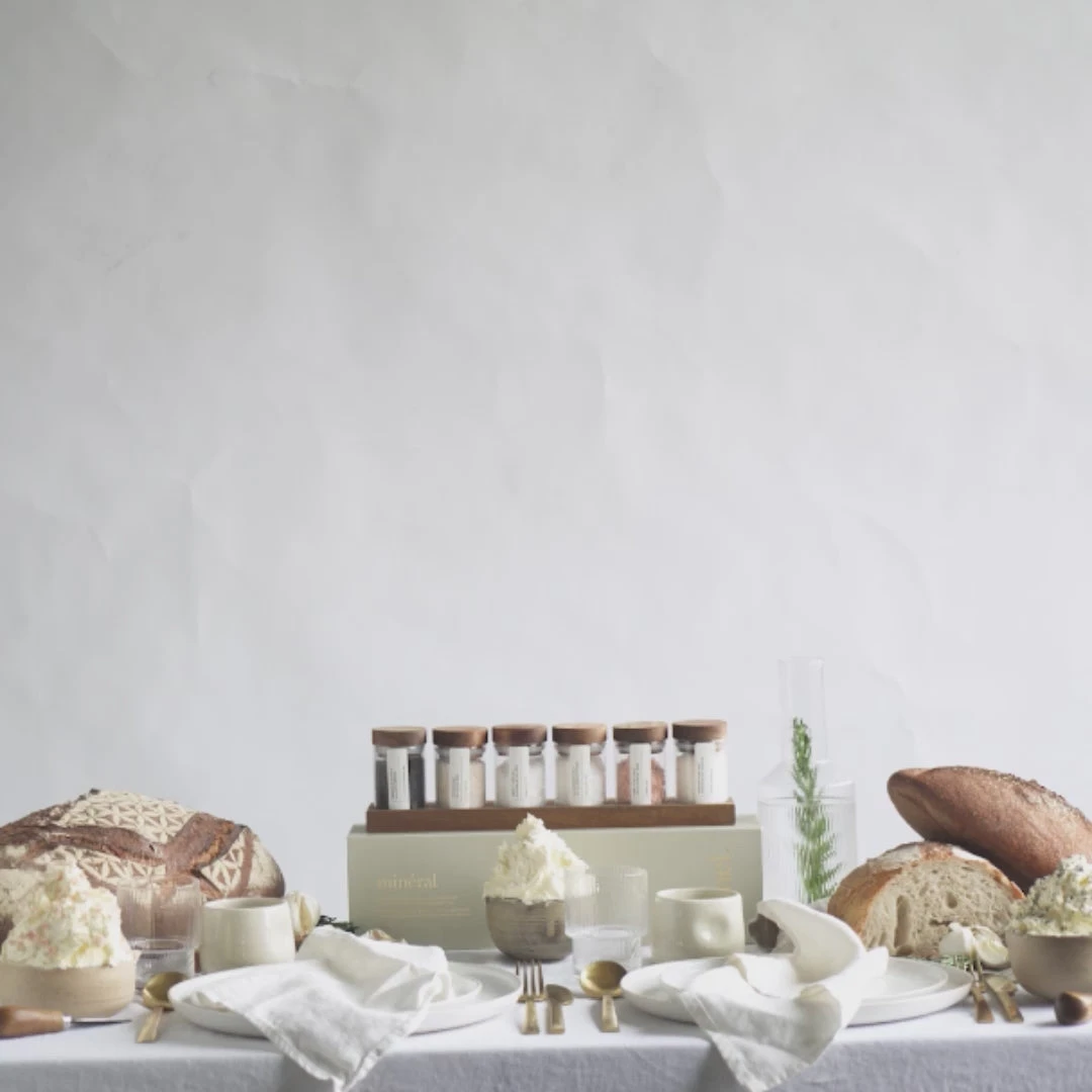 Introducing Minéral Pure Salt Collection from Kanel, six of the most brilliantly pure salts from around the world. This unique gift collection is presented in custom glass jars with handmade acacia lids and serving tray.