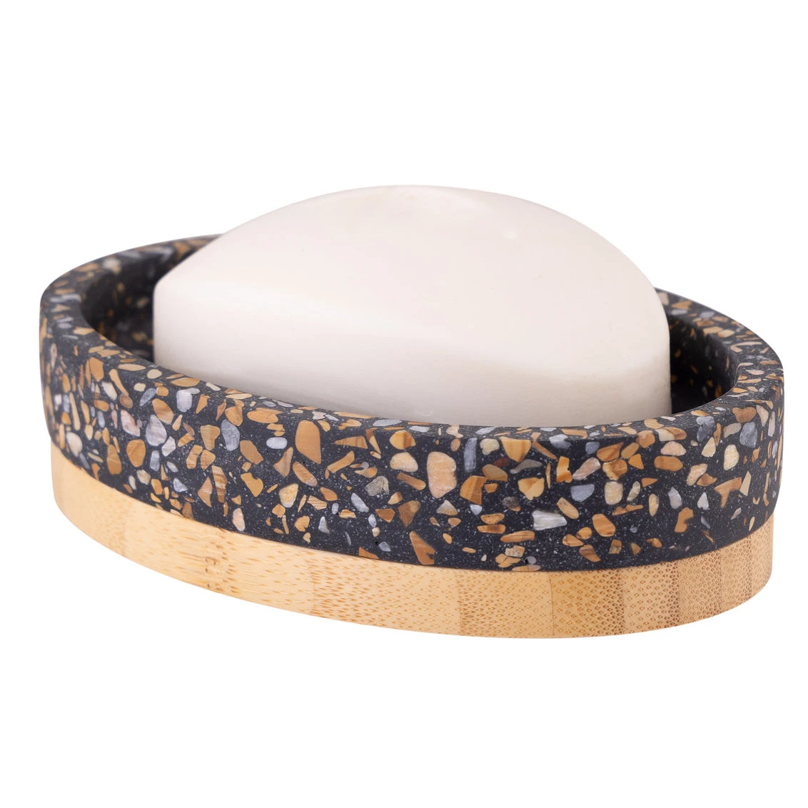 Enhanced with a bamboo touch, the Soren cement terrazzo series takes on a softer vibe. The dynamic interplay of warm hues against a lustrous black cement backdrop positions Soren as a truly captivating line of accessories. The visual depth and solid heft of these expertly crafted pieces convey a sense of robustness and enduring quality. With a range of six accessories, Soren effortlessly achieves a complete and contemporary aesthetic, ideal for enhancing the style of your bathroom.