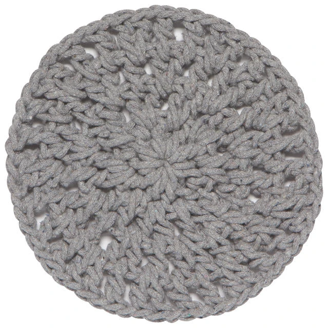 This cotton braided trivet provides protection against hot dishes, tea pots, and saucepans. Alternatively, it can be used as a placemat for small dishes or kids’ meals. Its lightweight and flat surface makes it easy to store.