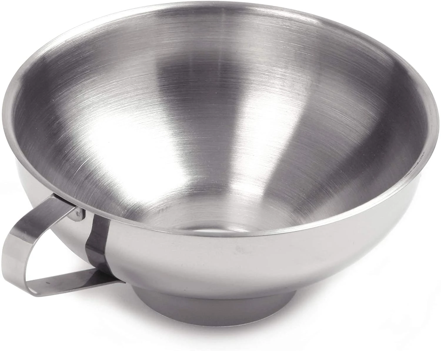 - Wide mouth is large enough for sugar, flour and grains like rice to flow through, filter liquids, place any mesh strainer on top Professional gauge stainless steel